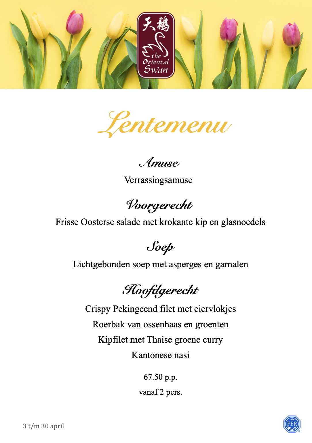 Dit Lentemenu serveren wij van 3 t/m 30 april.